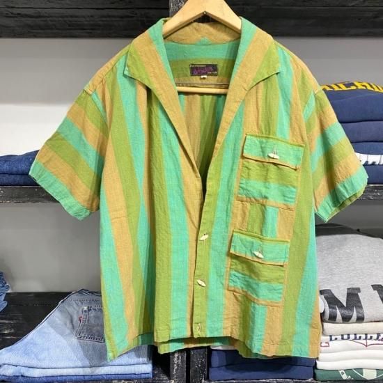 ¥Û¡¼¥à ¡ä SOLD OUT ¡ä 60-70's Alfredo's cotton woven stripe open collar s/s shirt
