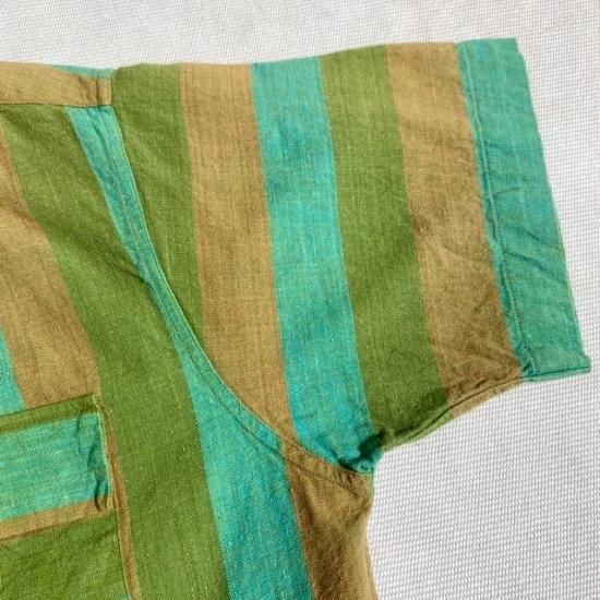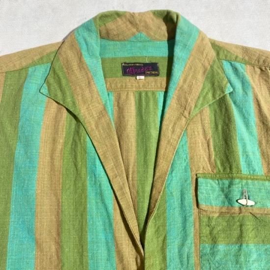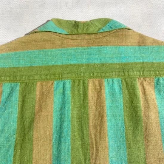 60-70's Alfredo's cotton woven stripe open collar s/s shirt
