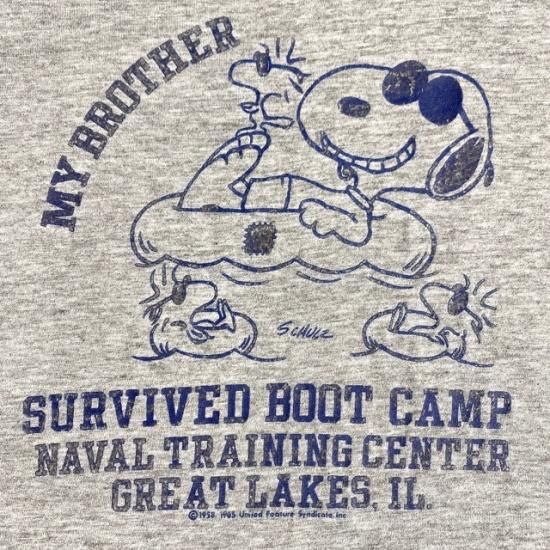 70-80's Artex Peanuts Naval Training Center flock print t shirt made in USA