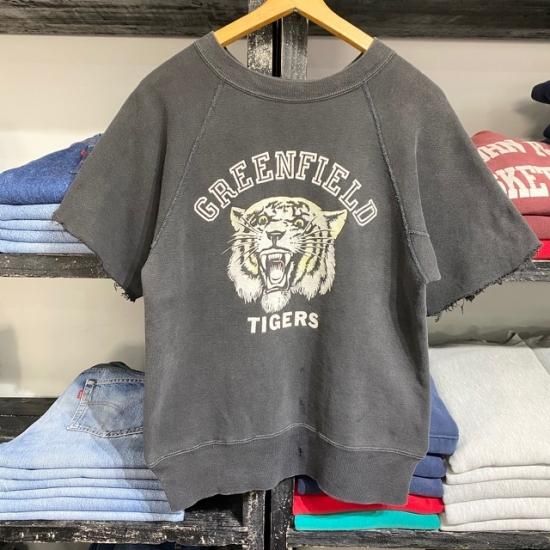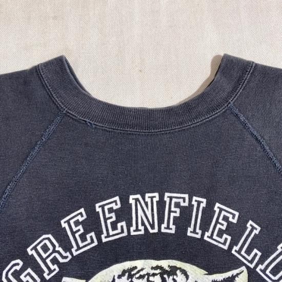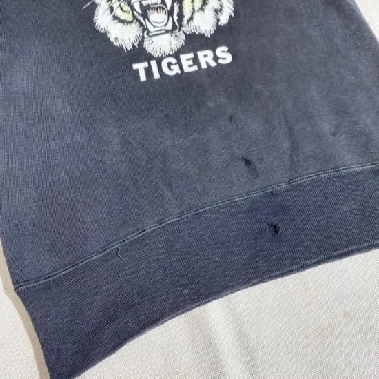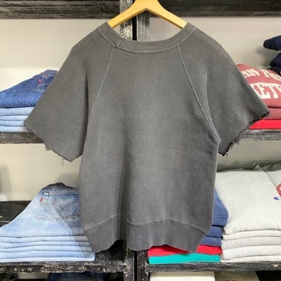 50-60's unknown brand color flock print cut off sleeve sweat shirt black color