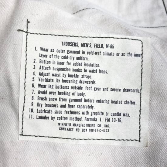NOS '67 US Armed Forces M-65 Field Trousers with aluminum zipper