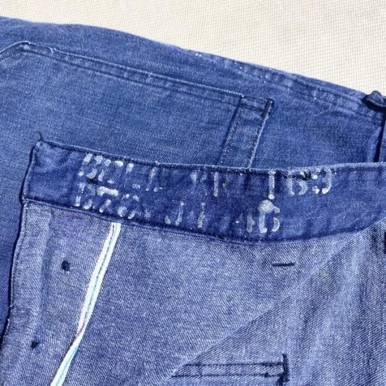 60's US Navy Vat-dyed denim trousers with stencil