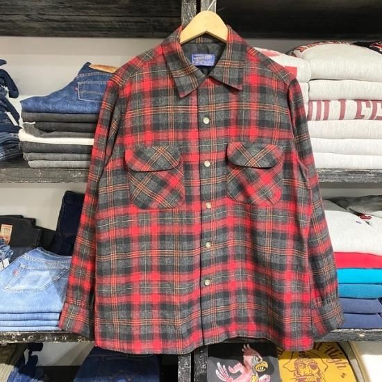 60's Pendleton wool woven plaid loop shirt