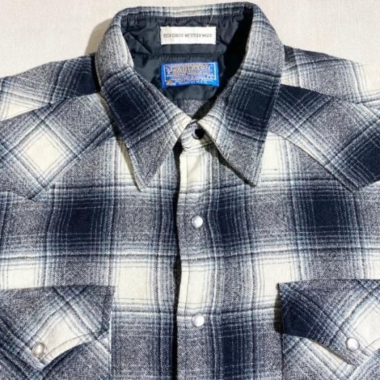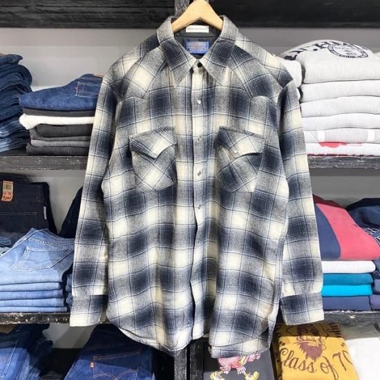 70-80's Pendleton wool woven shadow plaid western shirt