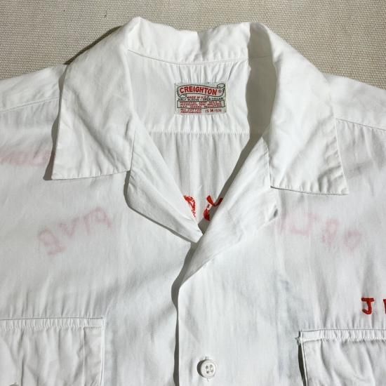 50's Creighton US Navy cotton s/s shirt with embroidery
