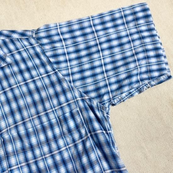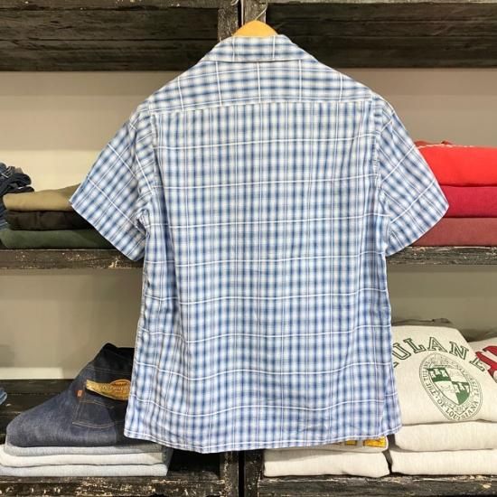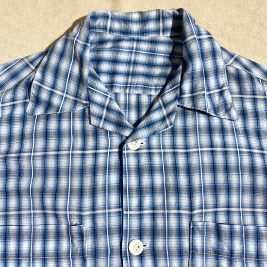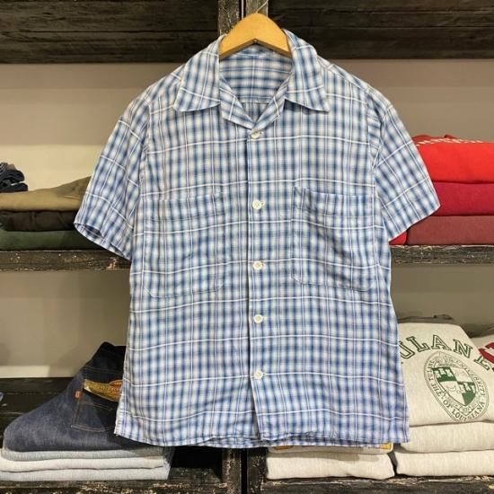 50-60's hand made? cotton woven shadow plaid s/s shirt