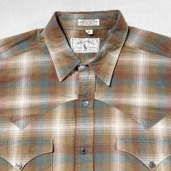 Late 70's-Early 80's Polo Western cotton woven shadow plaid western shirt