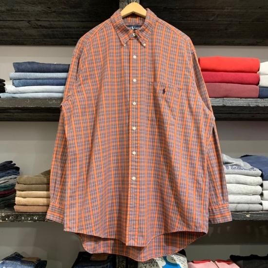 90-00's Ralph Lauren oxford woven plaid button down Big Shirt