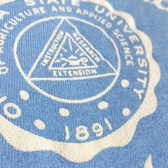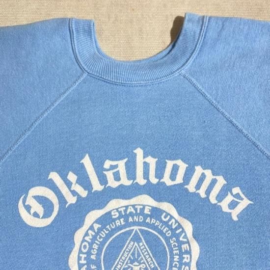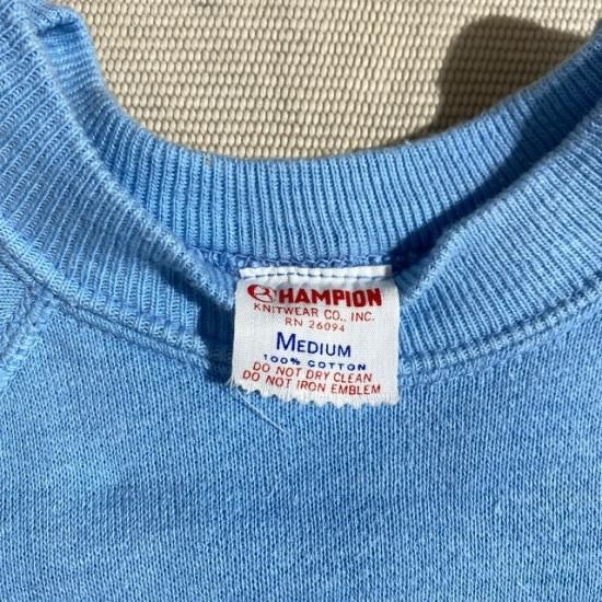 Late 60's Champion collegiate flock print sweat shirt with uppercase runner label