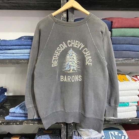 50-60's unknown brand color flock print sweat shirt black color