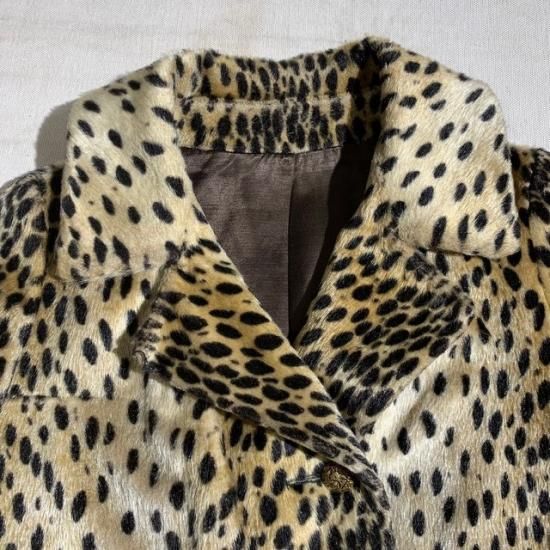 50-60's unknown brand lady's fake fur leopard patterned jacket