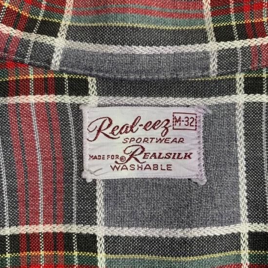 60's Real-eez rayon woven plaid loop shirt
