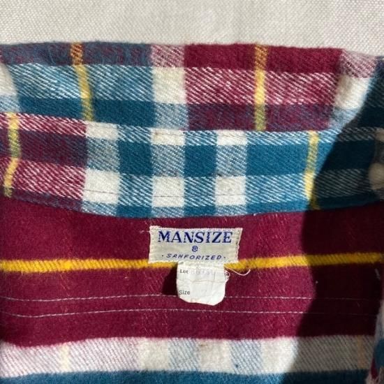 NOS 40-50's Mansize cotton woven plaid flannel shirt with gussets