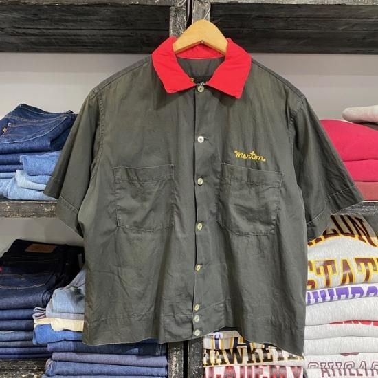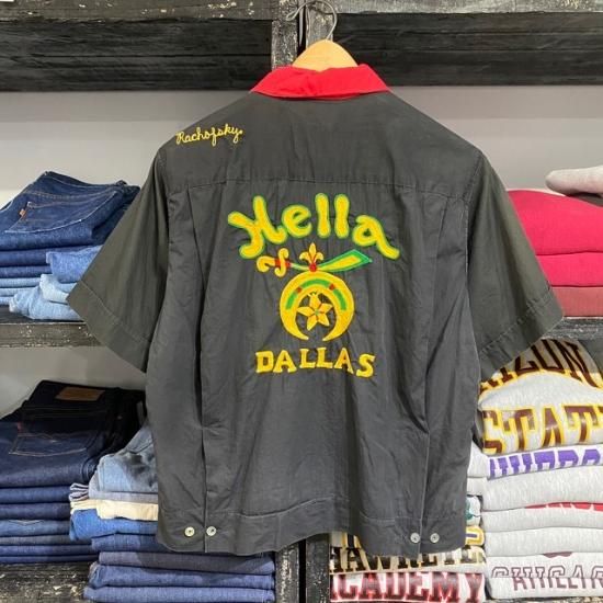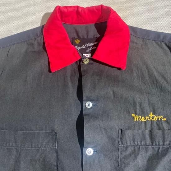50-60's Imperial Costumes of Dallas cotton bowling s/s shirt black color with embroidery