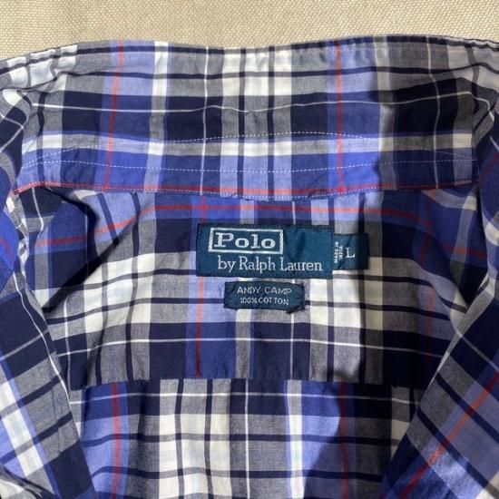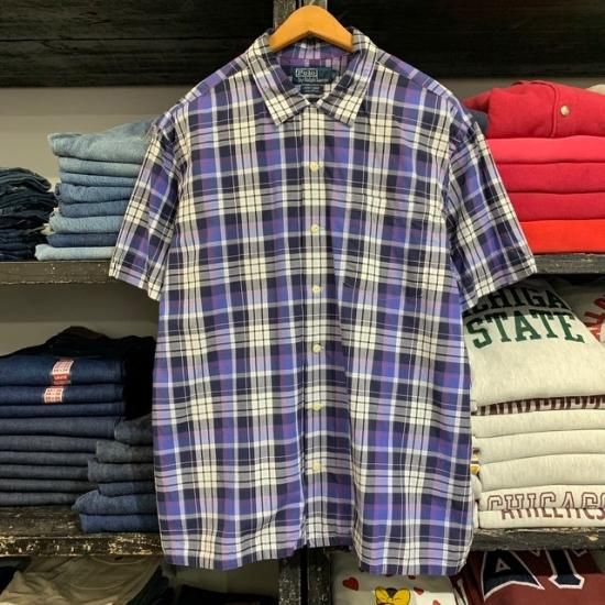 90-00's Ralph Lauren cotton woven plaid loop s/s shirt