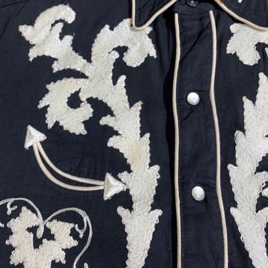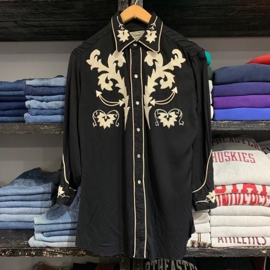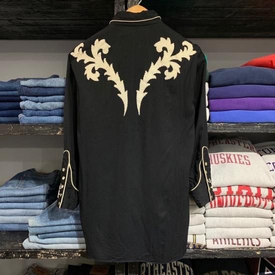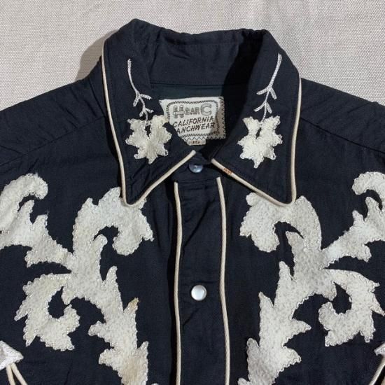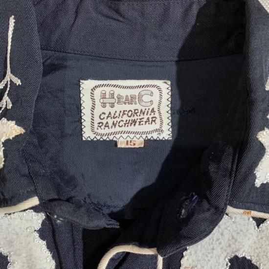 50-60's H Bar C rayon western shirt black color with embroidery