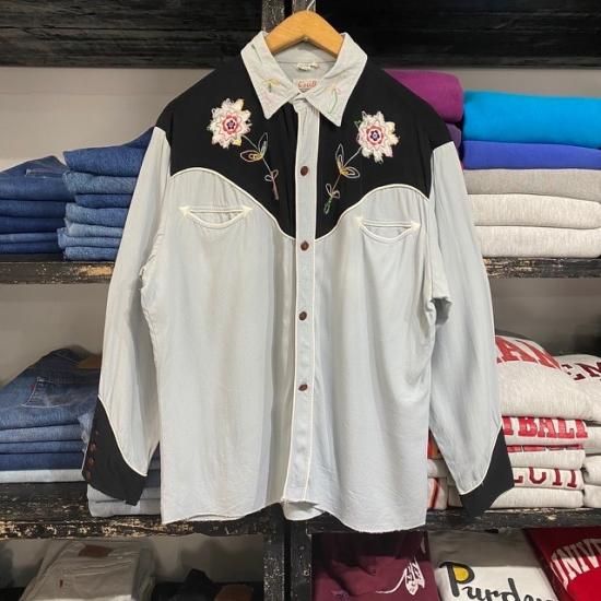 60's C Bar B rayon western shirt with embroidery