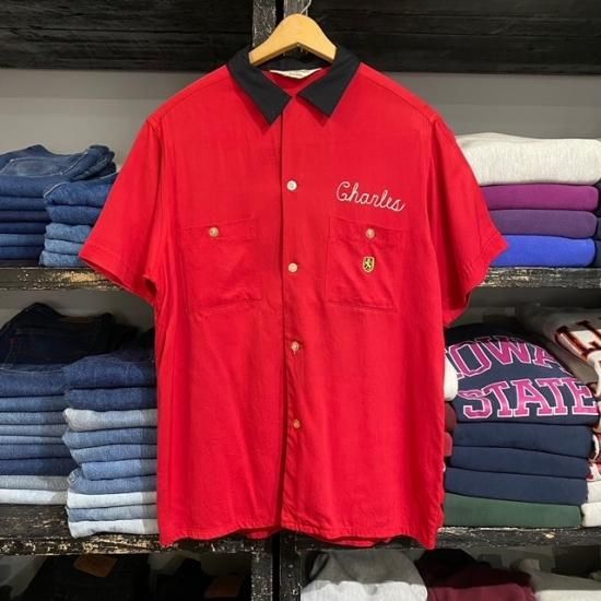 50-60's Wilson "US Army" rayon bowling s/s shirt with embroidery
