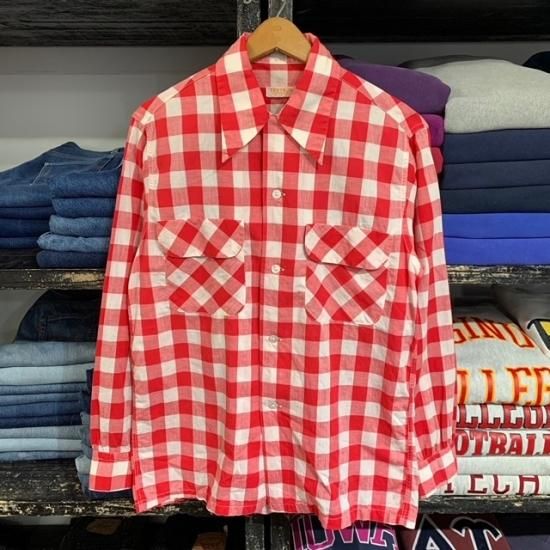 50's Textron cotton woven plaid loop shirt