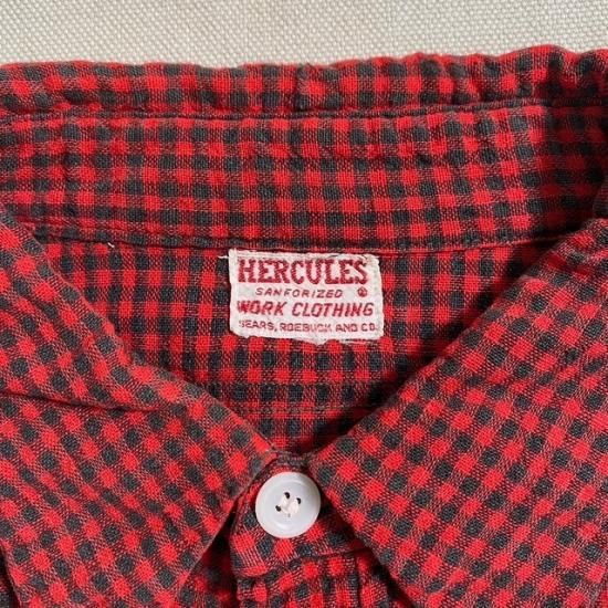50's Hercules cotton woven plaid work shirt with gussets