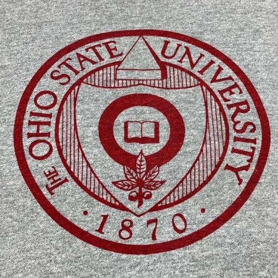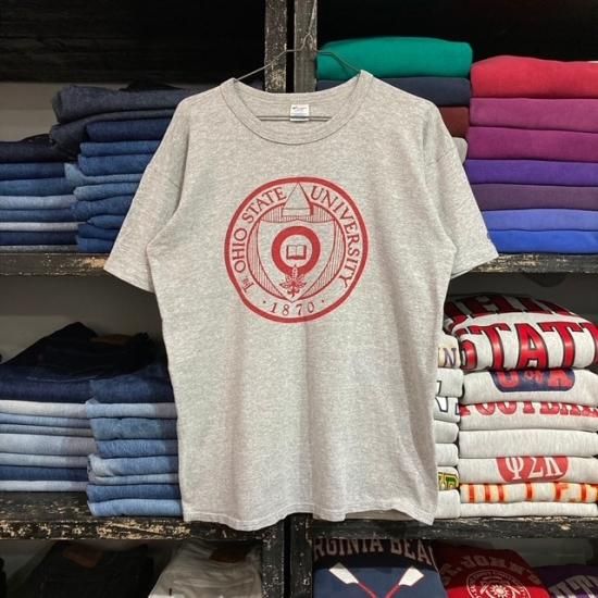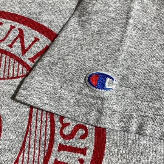 80's Champion collegiate water print t shirt with printed tricolor label