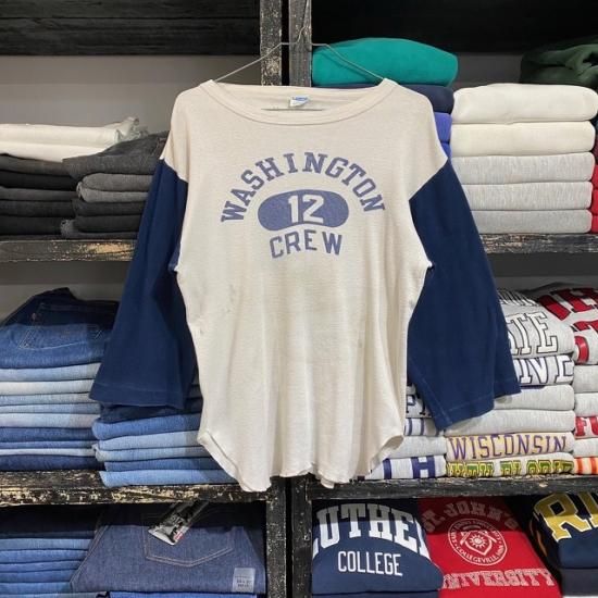 70's Champion water print baseball t shirt with blue bar label