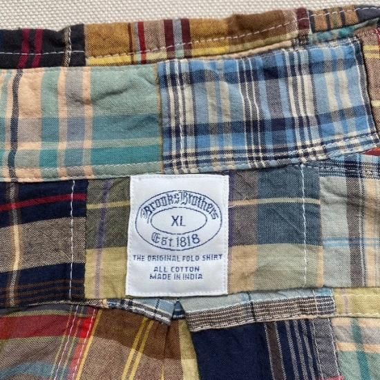 00-10's Brooks Brothers cotton patchwork Indian Madras plaid button down shirt