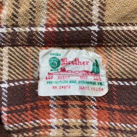 70's Five Brother cotton woven plaid flannel shirt