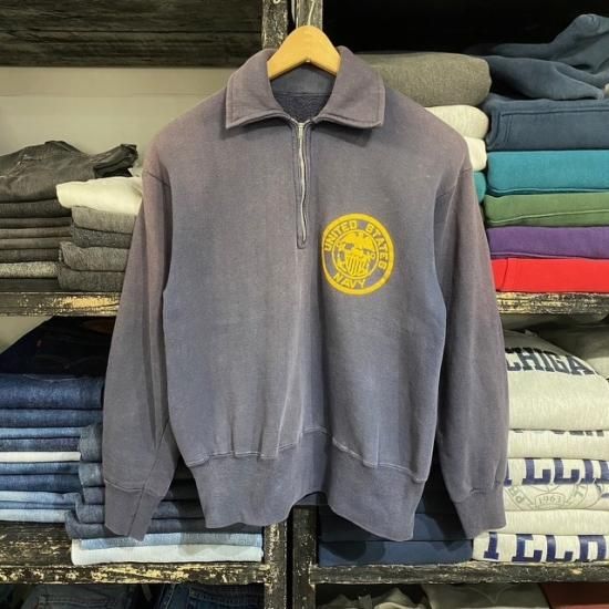 50-60's unknown brand "US Navy" half zip sweat shirt