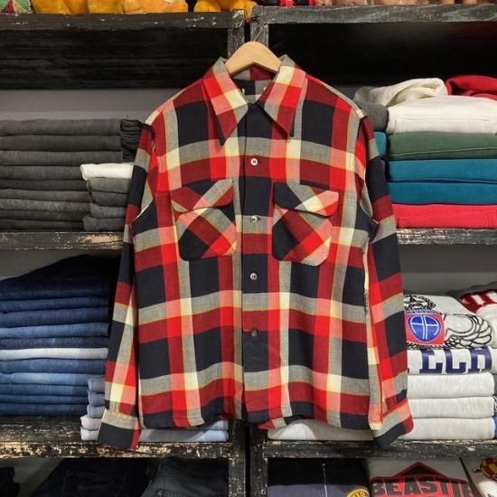 40-50's unknown brand woven plaid loop shirt