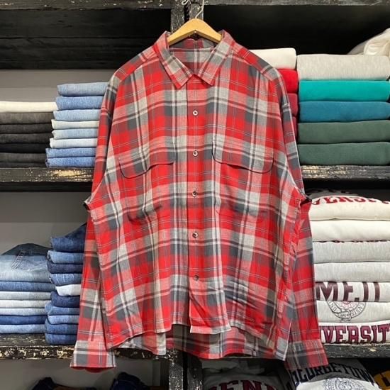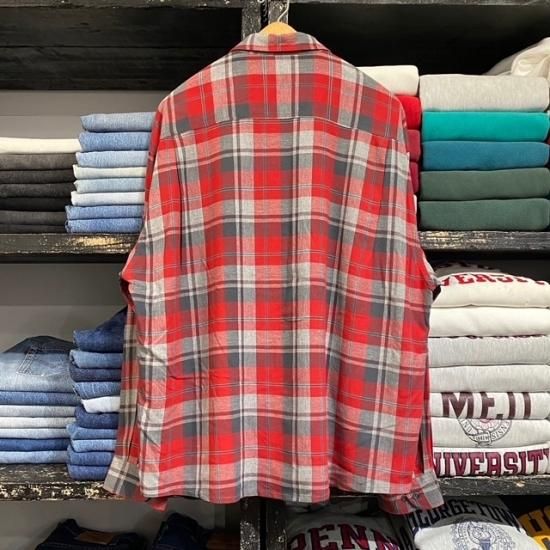 80-90's unknown brand rayon woven plaid loop shirt