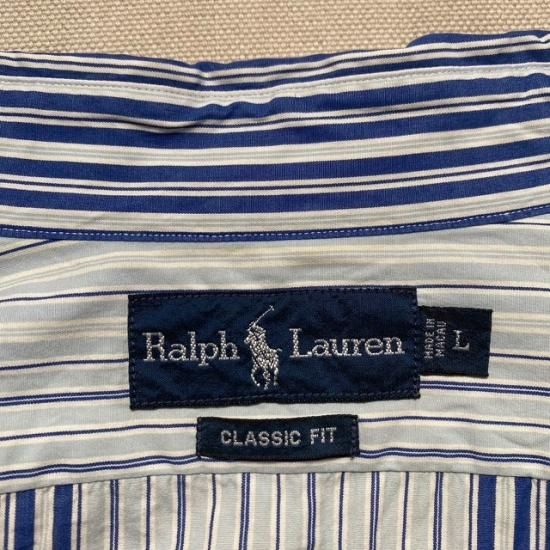 90-00's Ralph Lauren cotton woven stripe button down shirt with gussets