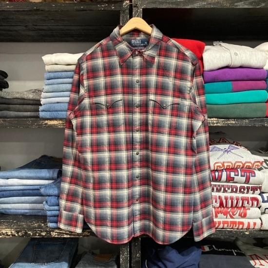 90-00's Ralph Lauren cotton woven shadow plaid western shirt