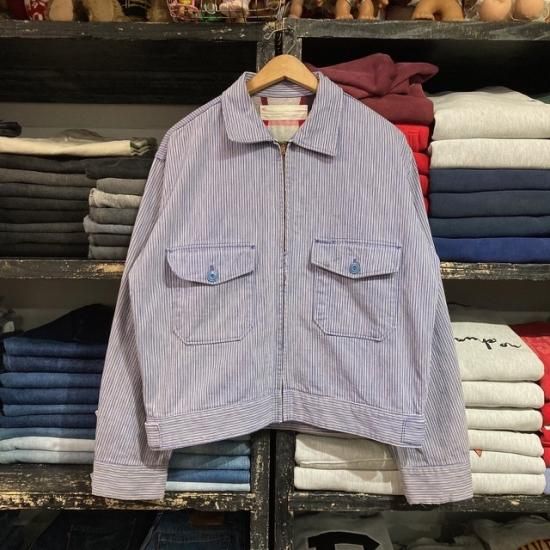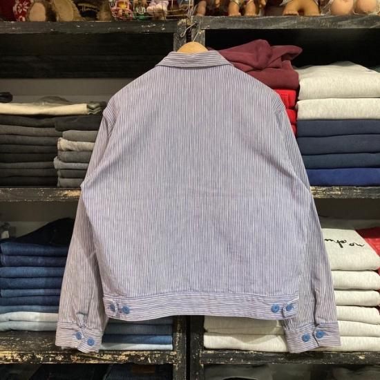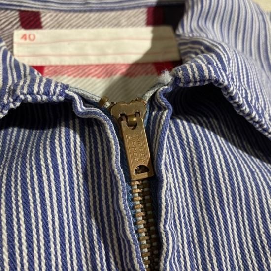 50-60's unknown brand cotton printed plaid flannel lined hickory stripe work jacket