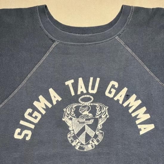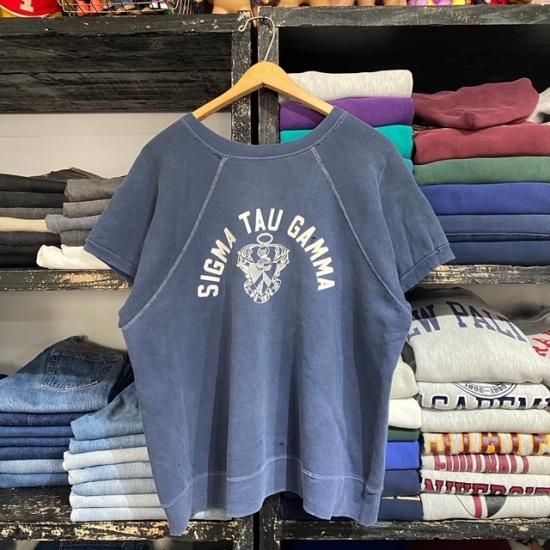 60-70's unknown brand fraternity flock print s/s sweat shirt