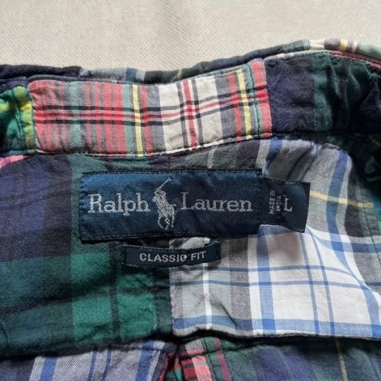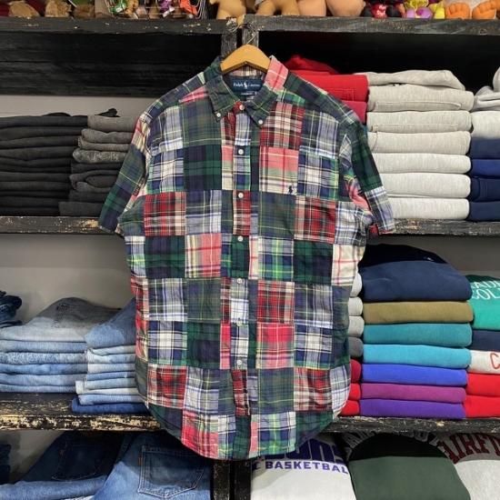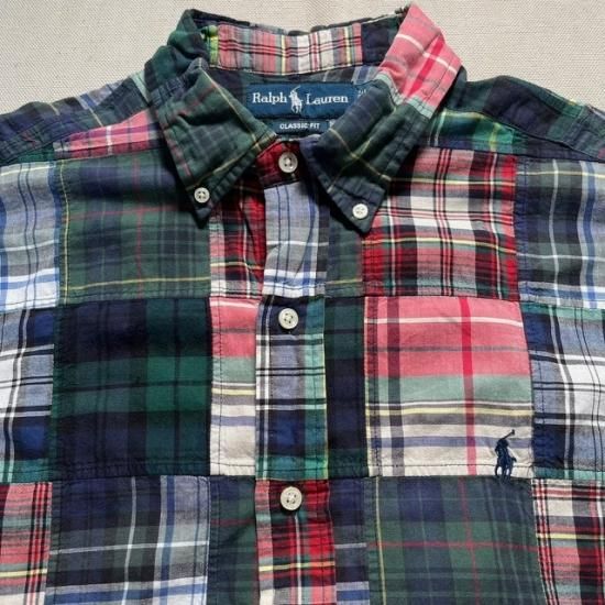 00-10's Ralph Lauren cotton patchwork Indian Madras plaid s/s button down shirt