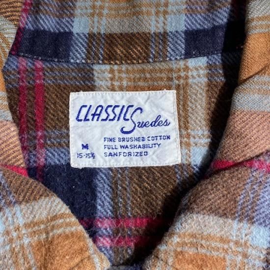 60-70's Classic Suedes cotton printed plaid flannel loop shirt