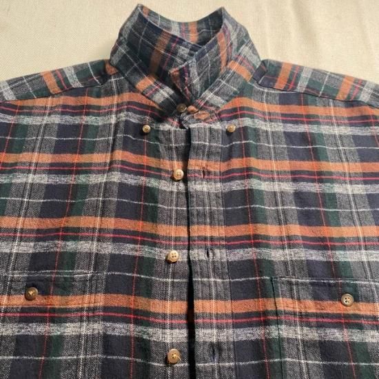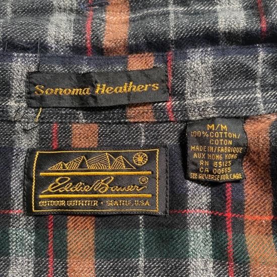 80-90's Eddie Bauer cotton woven plaid flannel button down shirt