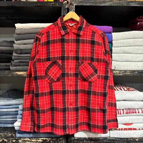 50-60's Towncraft wool woven plaid loop shirt