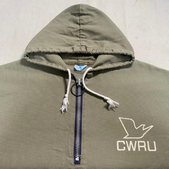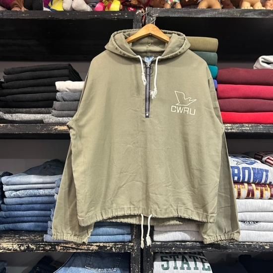 60's Artex collegiate flock print canvas half zip pullover