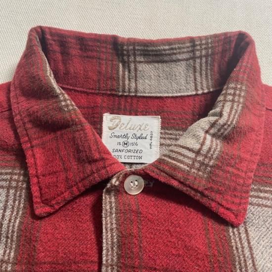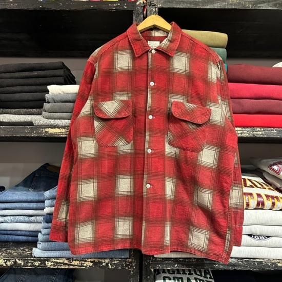 60-70's Deluxe cotton printed plaid flannel shirt