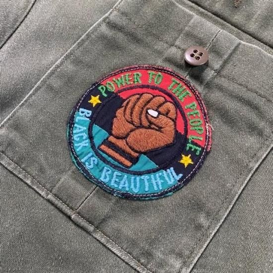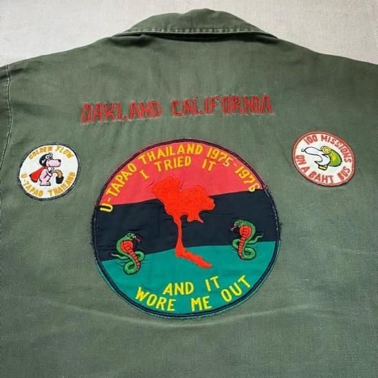 '75-'76 local made s/s Jungle Fatigue Shirt with embroidery and patches