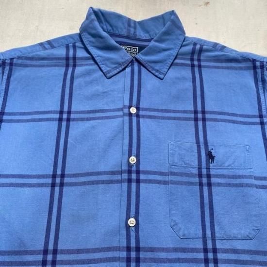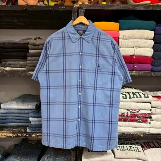 90-00's Ralph Lauren cotton woven plaid s/s loop shirt