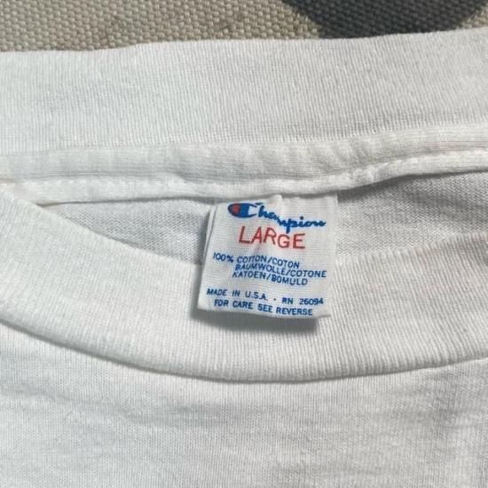 80's Champion collegiate t shirt with printed tricolor label